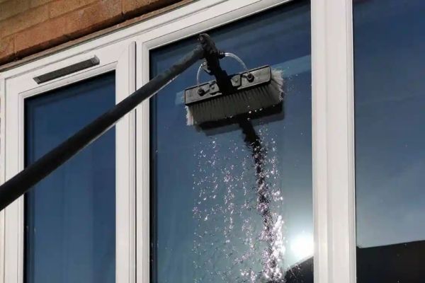 We clean the windows using the Water Fed Pole and Oure Water system which goes up to the 5th floor from the ground.